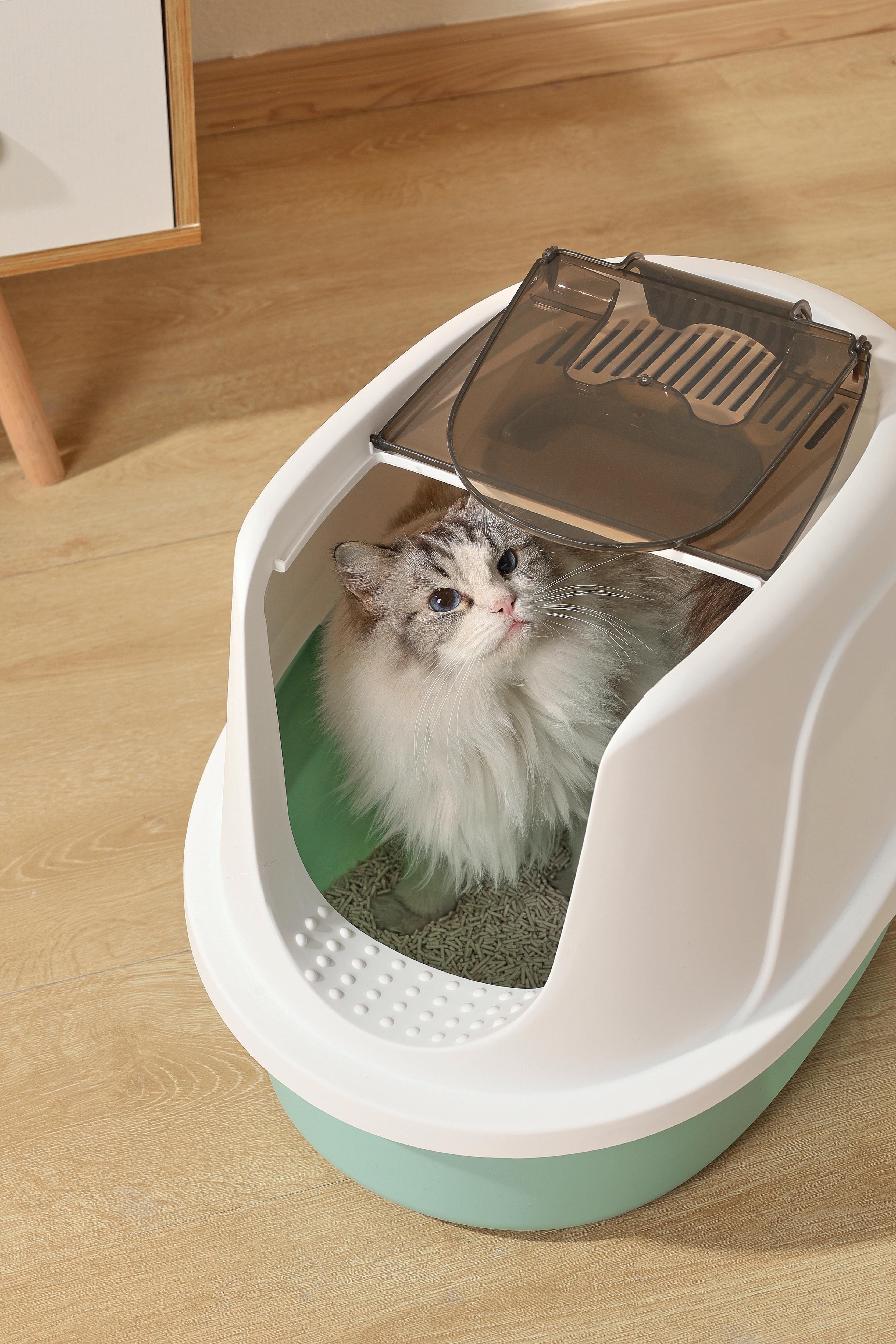 Porta a battente in plastica per un facile ingresso/uscita del tuo gatto; il cappuccio si solleva per una facile pulizia