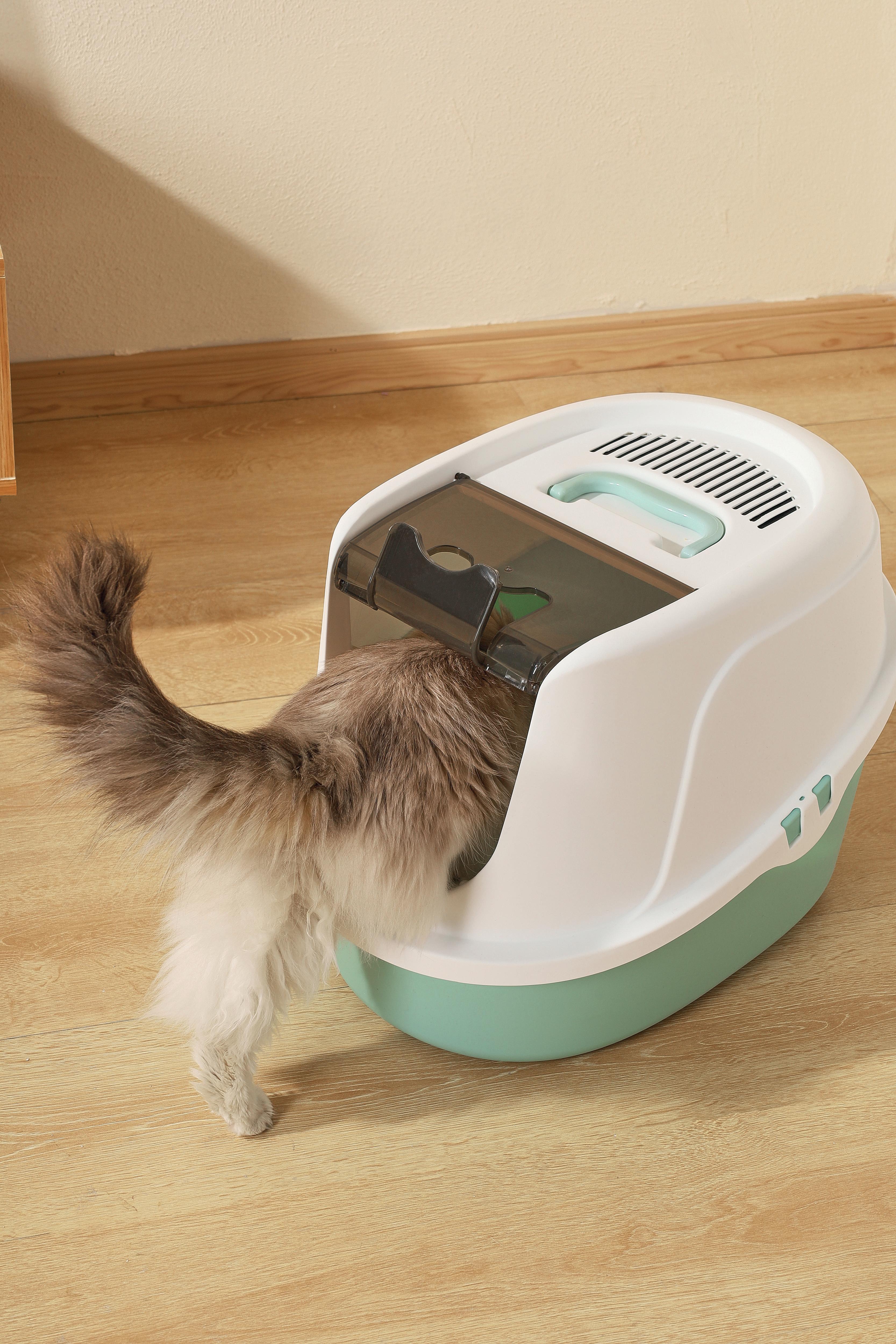 M-PETS ECO TIMA è la lettiera per gatti definitiva per i proprietari che si preoccupano dell'ambiente. Realizzata in plastica riciclata certificata GRS, ECO TIMA offre tutto il comfort e la praticità di una robusta lettiera in plastica, senza danneggiare l'ambiente. La gamma ECO TIMA è disponibile in tre colori naturali: Blu Oceano, Sabbia del Deserto e Verde Mare. Così puoi scegliere quella perfetta per abbinare la tua personalità e il tuo arredamento. Il nostro design moderno include una porta a battente per un facile accesso. Quando è il momento di pulire la lettiera, basta rimuovere la parte superiore e sostituire la sabbia all'interno. Ogni ECO TIMA è dotata di un filtro incluso, per garantire che la tua casa rimanga fresca e senza odori.