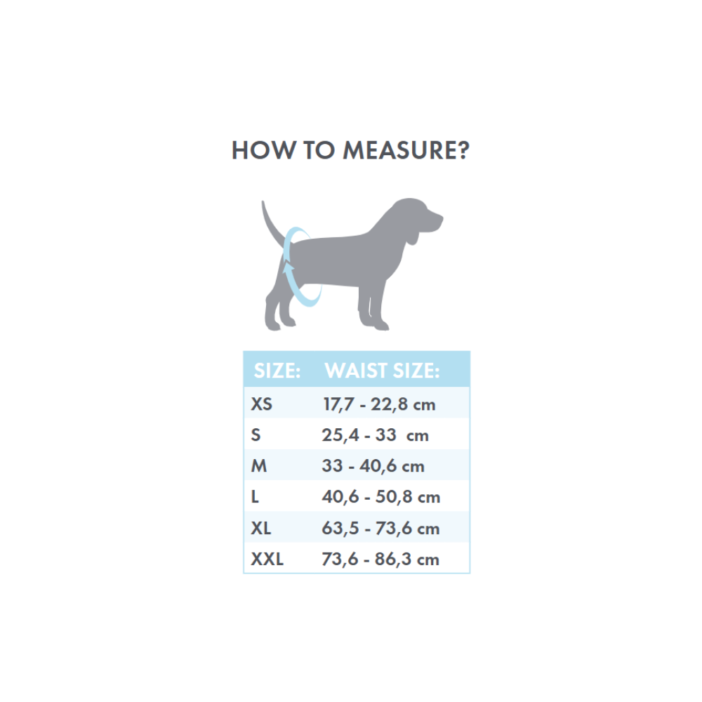 La vita del tuo cane diventa più grande dopo aver mangiato? È più piccola al mattino? Il tuo cucciolo sta ancora crescendo? La taglia dei pannolini M-PETS può essere regolata per adattarsi perfettamente al tuo cane.