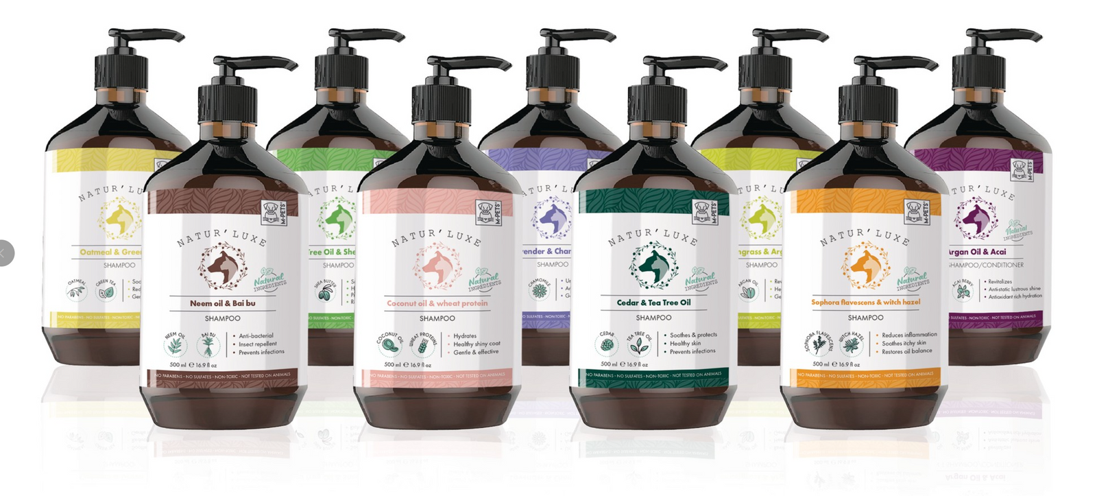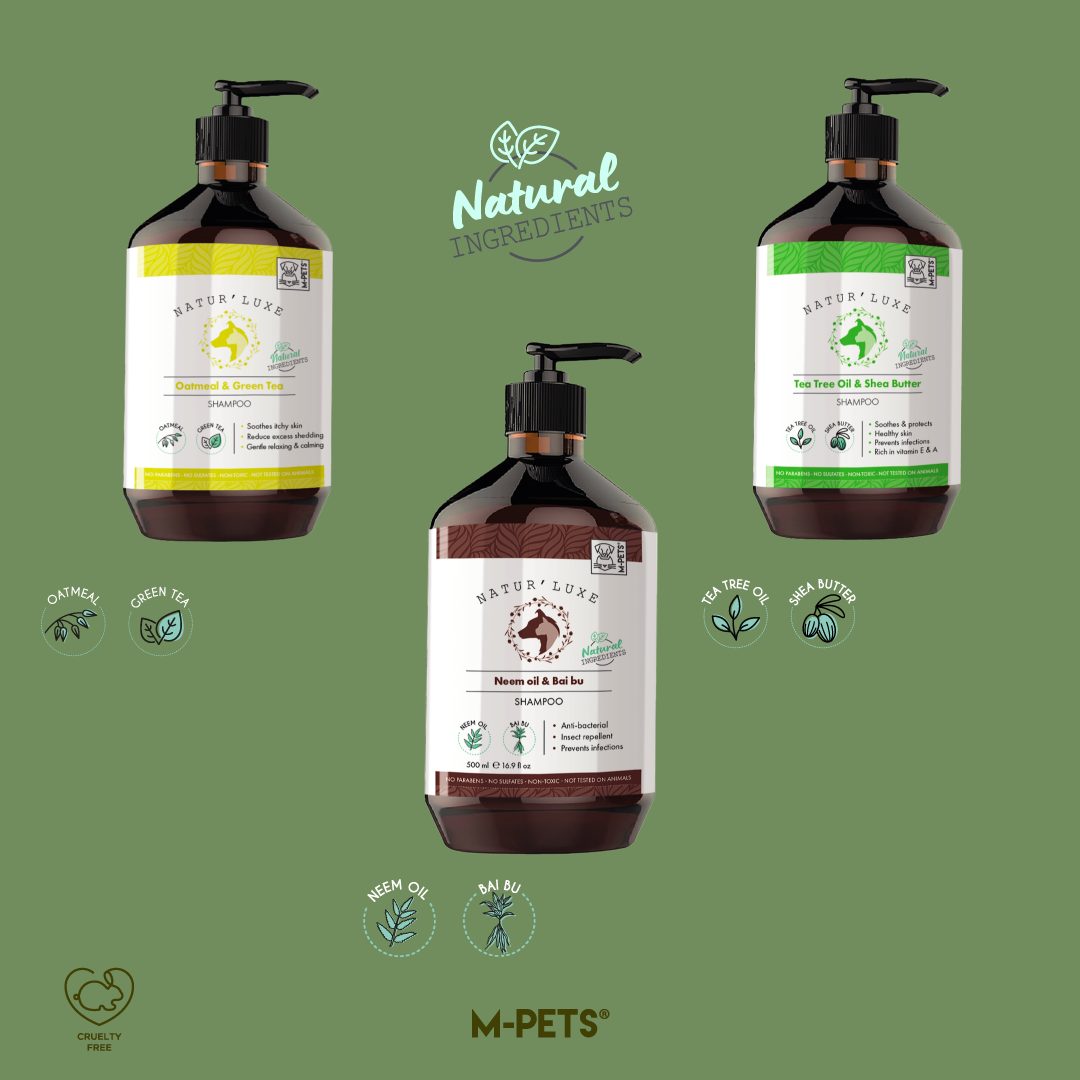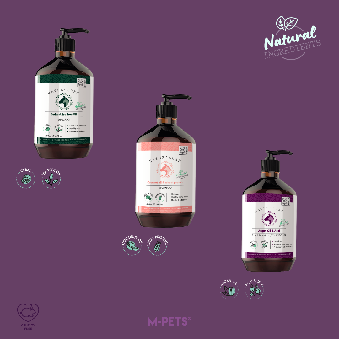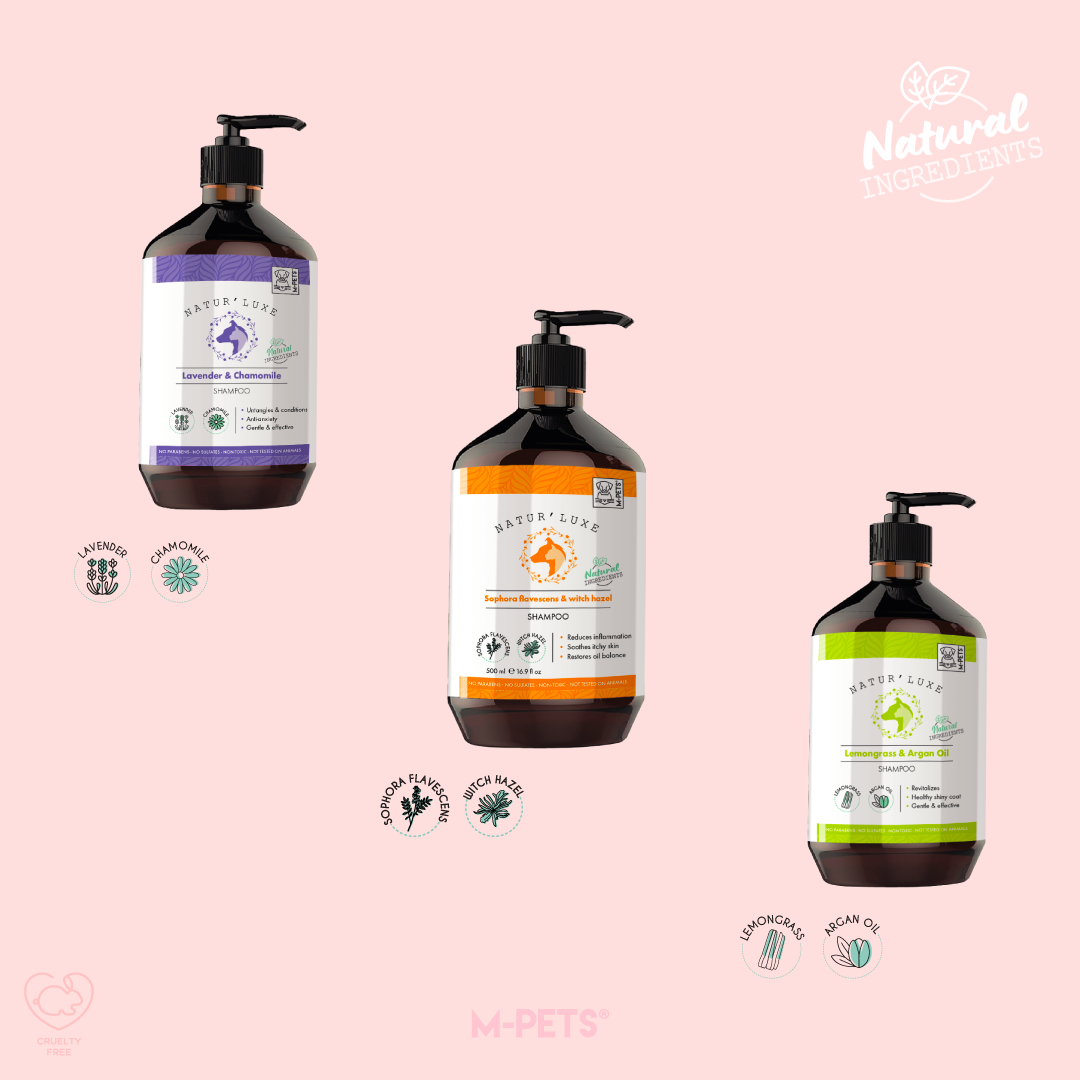 Pamper Your Pet with NATUR’LUXE by M-PETS®. We have expanded our range of natural pet shampoos with 4 new advanced formulas to cleanse, nourish, and revitalize your furry friend’s coat, leaving them feeling fresh, healthy, and oh-so-snuggable! Our natural pet shampoos are gentle yet effective, removing dirt, grime, and odors without stripping your pet’s coat of its natural oils.