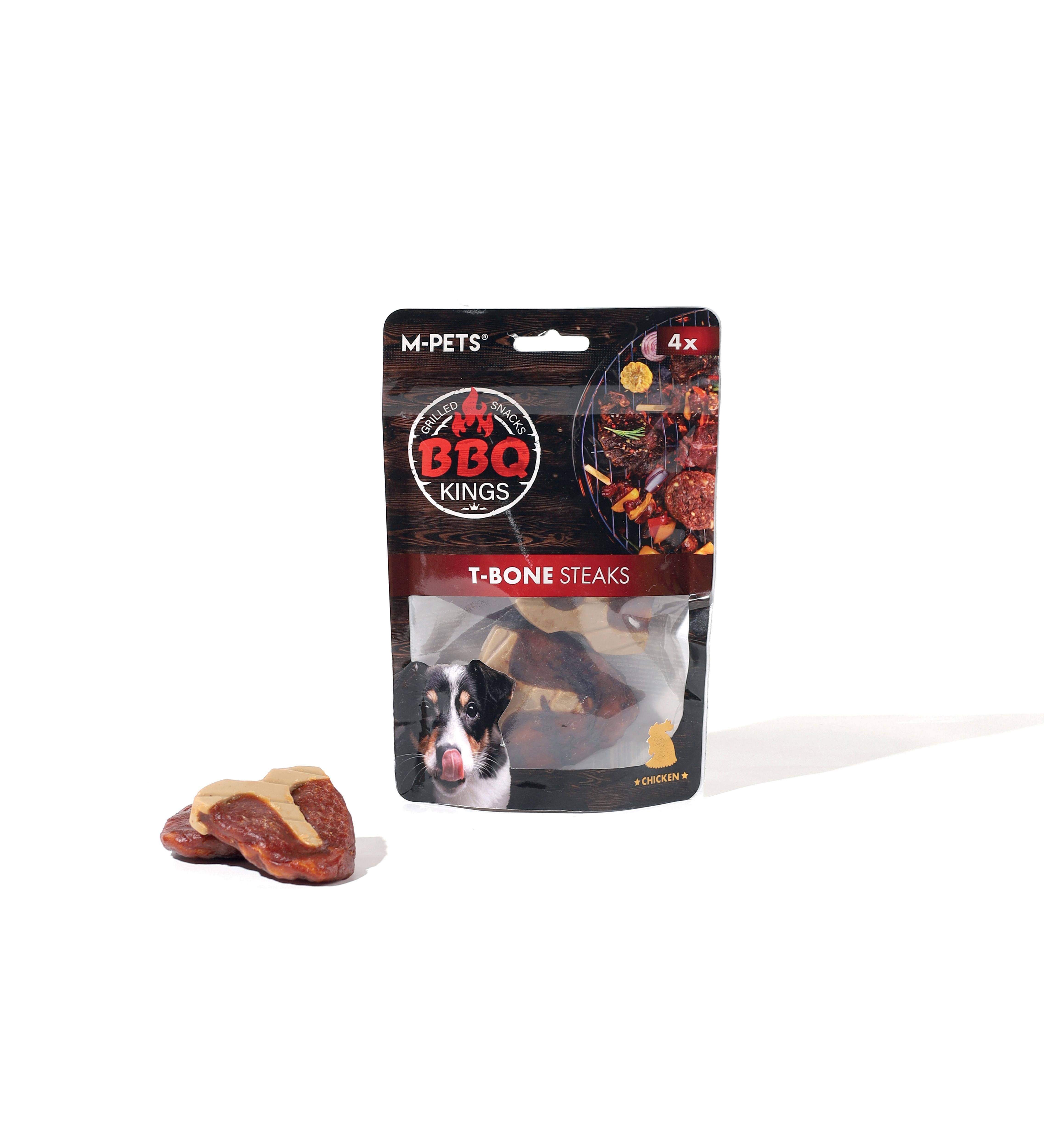 M-PETS BBQ KINGS Dog Snacks è una nuova gamma di deliziosi e nutrienti snack per il tuo cane. Gli snack sono disponibili in 9 diverse forme divertenti a tema BBQ che sicuramente faranno venire l'acquolina al tuo cane. I nostri BBQ KINGS Dog Snacks sono ricchi di proteine e 100% privi di pelle grezza, rendendoli facili da digerire e da assorbire i nutrienti. Masticare gli snack può anche aiutare a rafforzare le gengive e ridurre l'accumulo di tartaro intorno ai denti del tuo cane, promuovendo una migliore igiene orale. Che tu stia insegnando nuovi trucchi al tuo cane o premiando un buon comportamento, assicurati di coccolarlo con questi deliziosi snack BBQ KINGS!