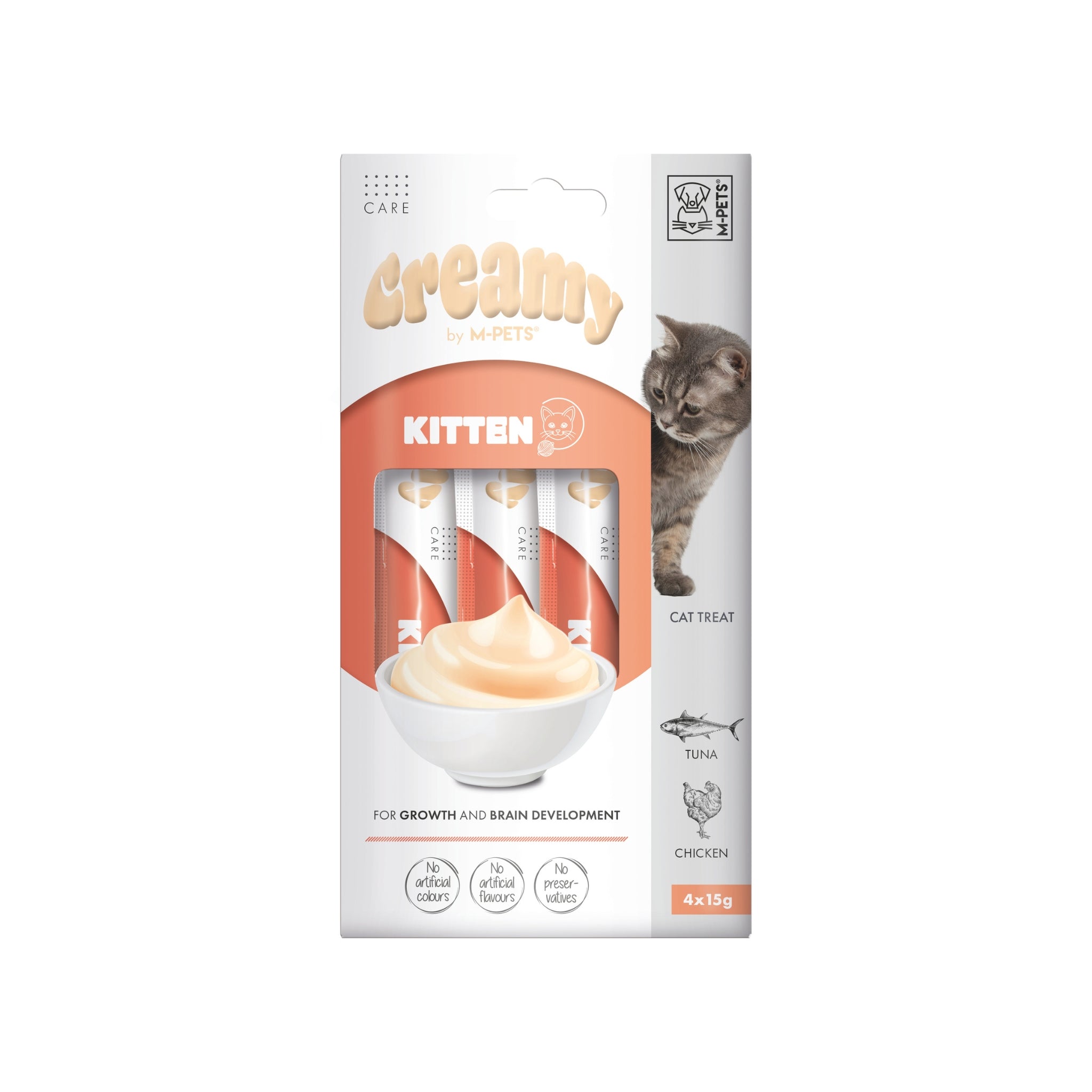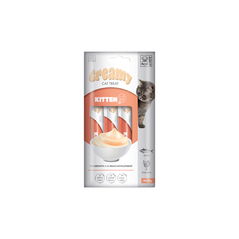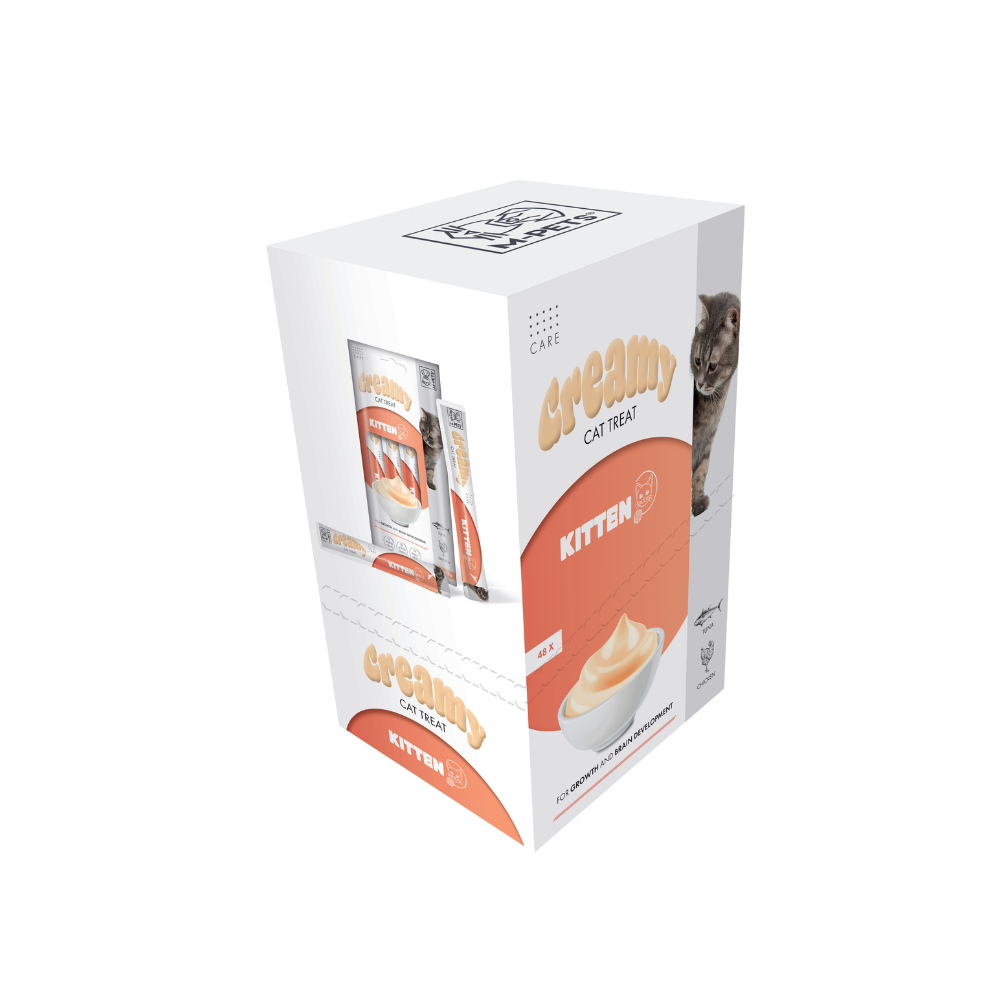 Per una crescita e uno sviluppo ottimali! Dai al tuo gattino il miglior inizio di vita con la nostra formula Creamy Cat Treat Kitten. Realizzata con un delizioso mix di tonno e pollo, questa leccornia supporta la crescita e lo sviluppo cerebrale dei gattini. Con un alto contenuto di umidità e una formula speciale priva di coloranti, aromi e conservanti artificiali, è il trattamento ideale per nutrire il tuo gattino in crescita.